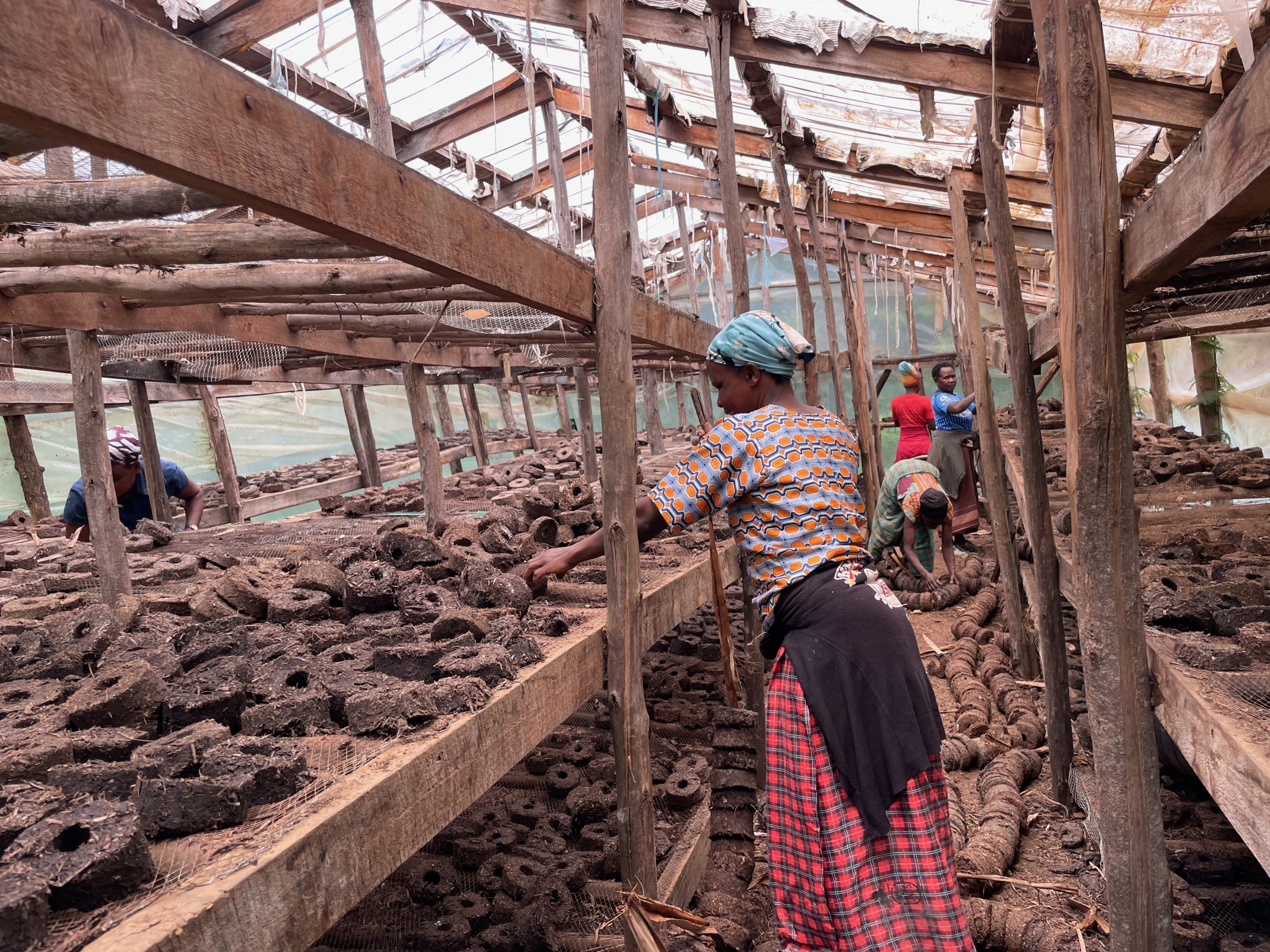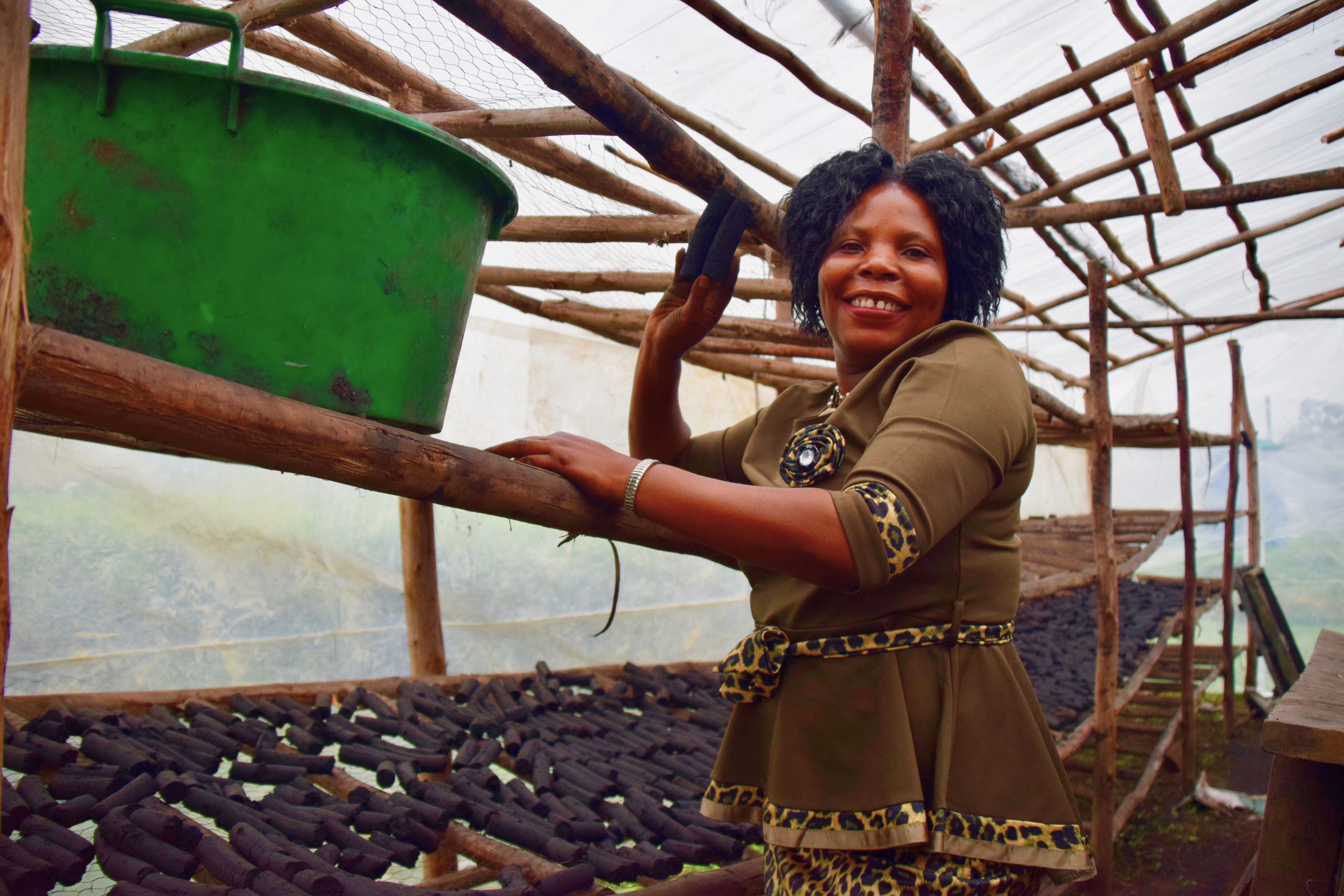 Two types are produced: Carbonized briquettes, which burn like charcoal, are made from non-native plants that grow in and around Kibale; non-carbonized briquettes, which burn like firewood, are made from fruit and vegetable peelings, sawdust and wastepaper.